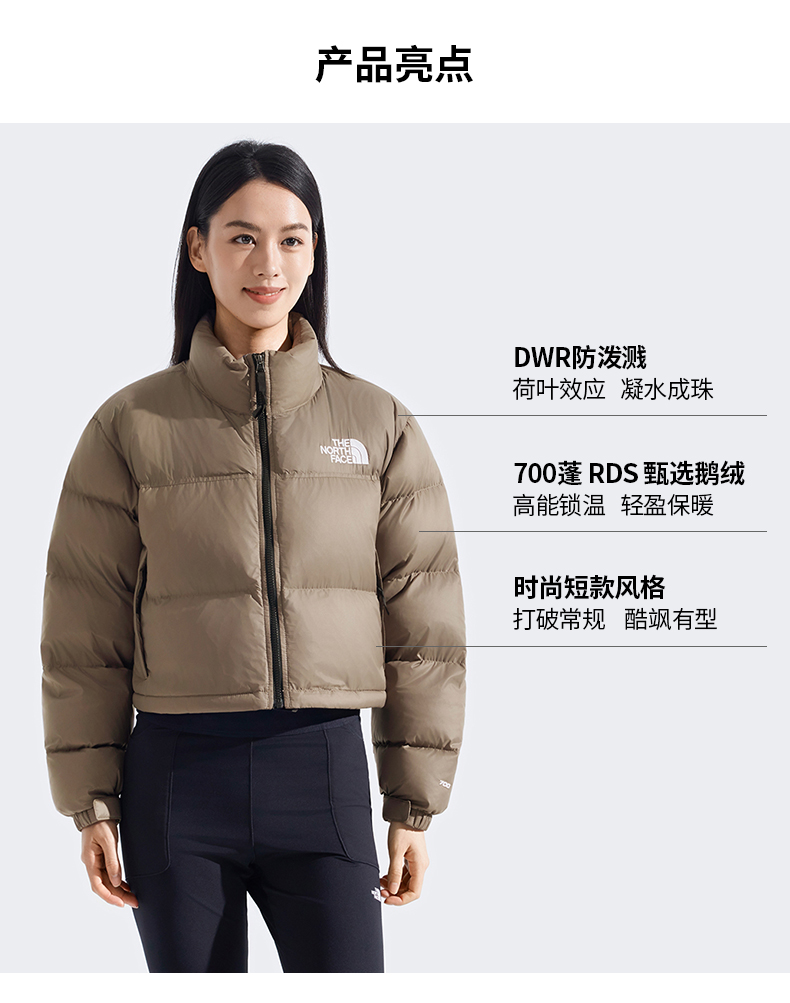 北面经典ICON女Nuptse短款羽绒服鹅绒防泼水TheNorthFace|5GGE